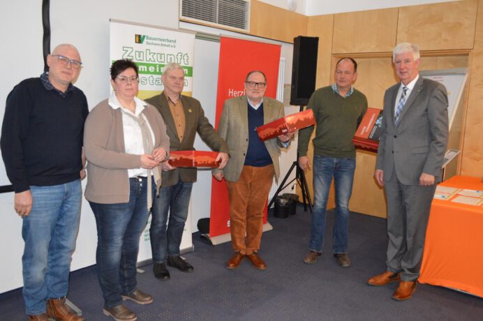 Wilfried Feuerstack, langjähriges Vorstandsmitglied, fand deutliche Worte: „Unsere Motivation beim Aufbau des Bauernverbandes war damals, dass wir uns um unsere Belange selber kümmern müssen. Nach der Wende stand aber die Gesellschaft noch hinter uns.“ Der engagierte Landwirt forderte alle Berufskollegen und besonders den neu zu wählenden Vorstand auf, gemeinsam mit allen Bauern die heimische Landwirtschaft zu stärken, politisch aktiv zu sein. Auch Kilian empfahl die in der Vergangenheit bewährte Zusammenarbeit mit den anderen Bauernvereinigungen. Der Versammlungsleiter bedauerte wie auch Diana Borchert, Geschäftsführerin des Bauernverbandes Nordharz, in ihrem Bericht den Austritt einiger Betriebe aus dem Verband. Das ließe Solidarität vermissen, so Kilian. Borchert ist eher enttäuscht von den Berufskollegen, die solche Entscheidungen träfen und wie alle anderen doch weiter von der Arbeit der Verbände profitierten. Borchert führte aus, was der Kreis- und Landesbauernverband sowie der Deutsche Bauernverband im vergangenen Jahr erreicht hätte und woran noch gearbeitet würde. Auch Präsident Feuerborn erläuterte, unter anderem am Beispiel der Düngeverordnung, wie schwierig, langwierig und wie klein mitunter die Schritte vorwärts bei Verhandlungen auf politischer Ebene seien. Er lobte die Mitarbeiter in den Geschäftsstellen der Kreisverbände und die Ehrenamtler für ihren Einsatz. Kurze Diskussionsbeiträge, Revisionsbericht, Haushaltsbericht, Beitragsordnungsbeschluss und die Wahl der Delegierten zum Landesbauerntag 2026 folgten gemäß dem Versammlungsprocedere.